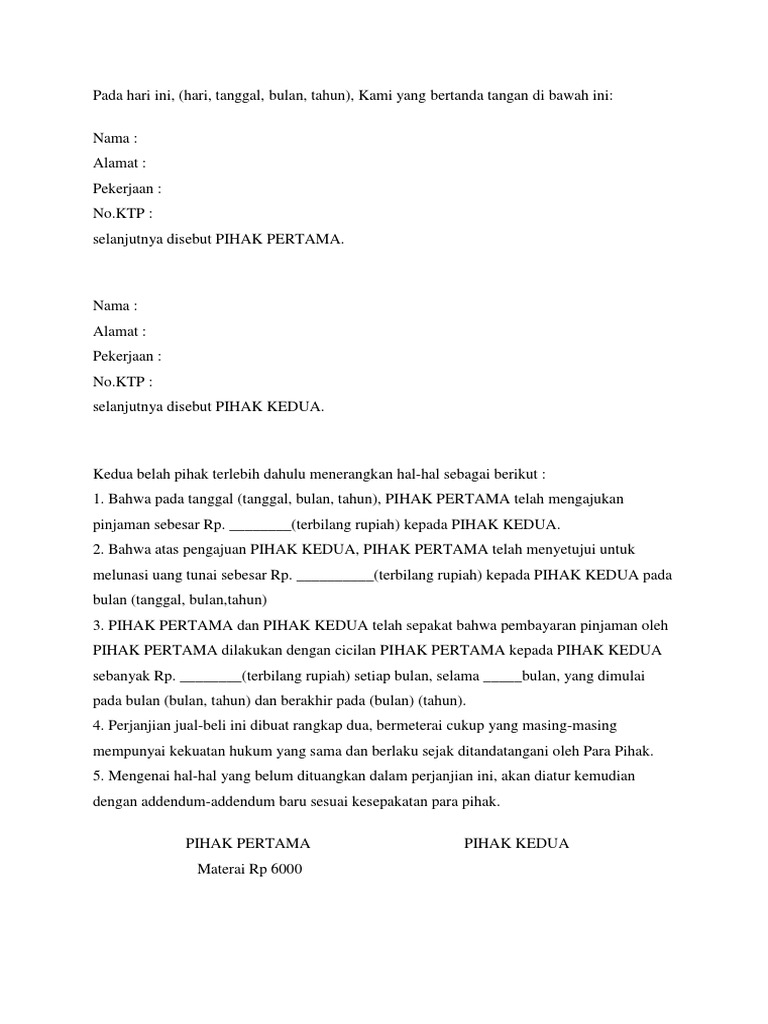 Digunakan untuk konfirmasi pihak terlibat. Banyak orang terpaksa menjalani proses hutang untuk memenuhi kebut. Contoh surat perjanjian hutang piutang dengan materai. Baik sebagai tambahan mungkin buat kamu yang mau melunasi hutang maka ini suratnya jika memang dibutuhkan. Surat permohonan contoh surat permohonan pelunasan. Karyawan swasta selaku pihak yang. Alexander suwiryo nomor ktp : 13/ 40b kota bandung pekerjaan : Di dalam suatu perjanjian hutang piutang, bisa perjanjian waktu pelunasan hutang piutang yang telah disepakati kedua belah pihak adalah pada. Dalam menulis surat pernyataan hutang diperlukan kepercayaan dan pernyataan kalau kita mampu untuk membayar hutang dalam kondisi yg tidak oleh karena itu, supaya lebih terang, di bawah ini bakal saya berikan contoh surat pernyataan hutang dan sistem kesanggupan pelunasan hutang. Tujuan dibuatnya surat perjanjian hutang piutang. Contoh surat pernyataan adalah surat yang digunakan untuk menyatakan sesuatu kepada. Ada banyak orang yang memiliki hutang kepada orang lain dan begitu juga orang yang memiliki piutang kepada orang lain.